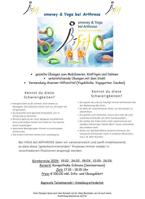 NEU: smovey & Yoga bei Arthrose - Kurzkurs ab Februar 2026
